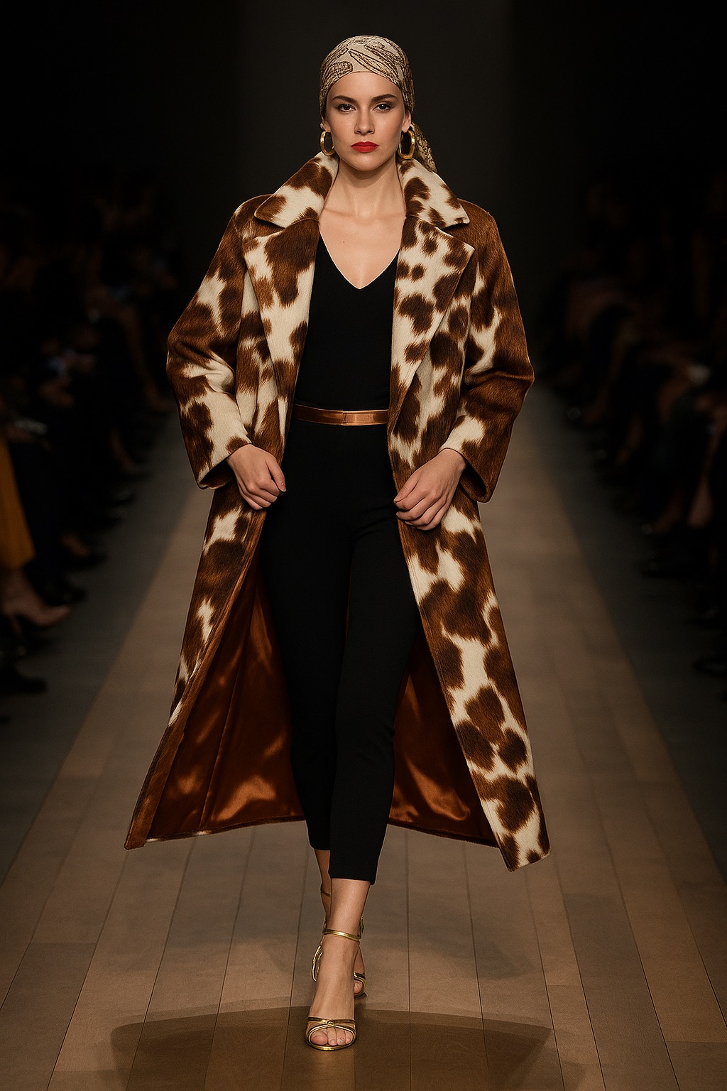 Descubre el Abrigo Animal Print Élite, una prenda que transforma tu estilo con un solo gesto. Su diseño de corte recto y largo midi estiliza la silueta, mientras el tejido estructurado con estampado animal aporta fuerza y sofisticación.